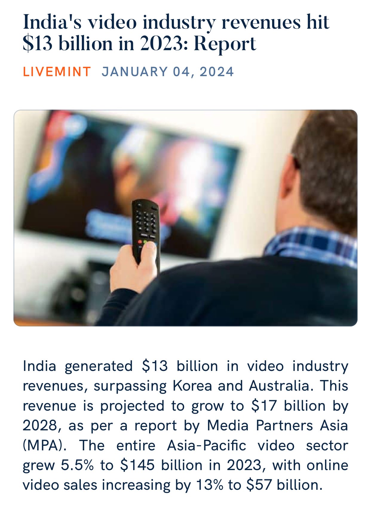 Source : m.facebook.comAmit Agarwal on X: “India’s video industry revenues hit $13